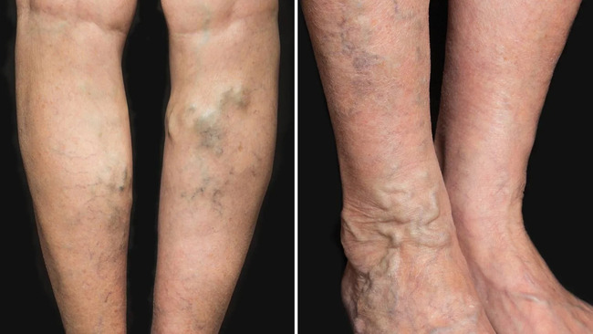 Sergant venų varikoze, venos taip ištinsta ir deformuojasi, kad atrodo kaip po oda slypintis gyvačių kamuolys.