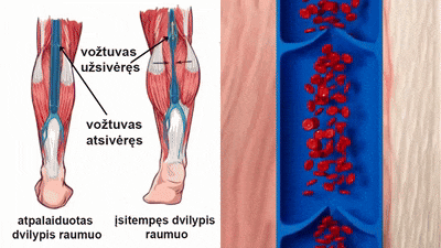 Šis susitraukimas atveria venų vožtuvus ir nustumia seną, sustingusį kraują teisinga kryptimiprieš gravitaciją.